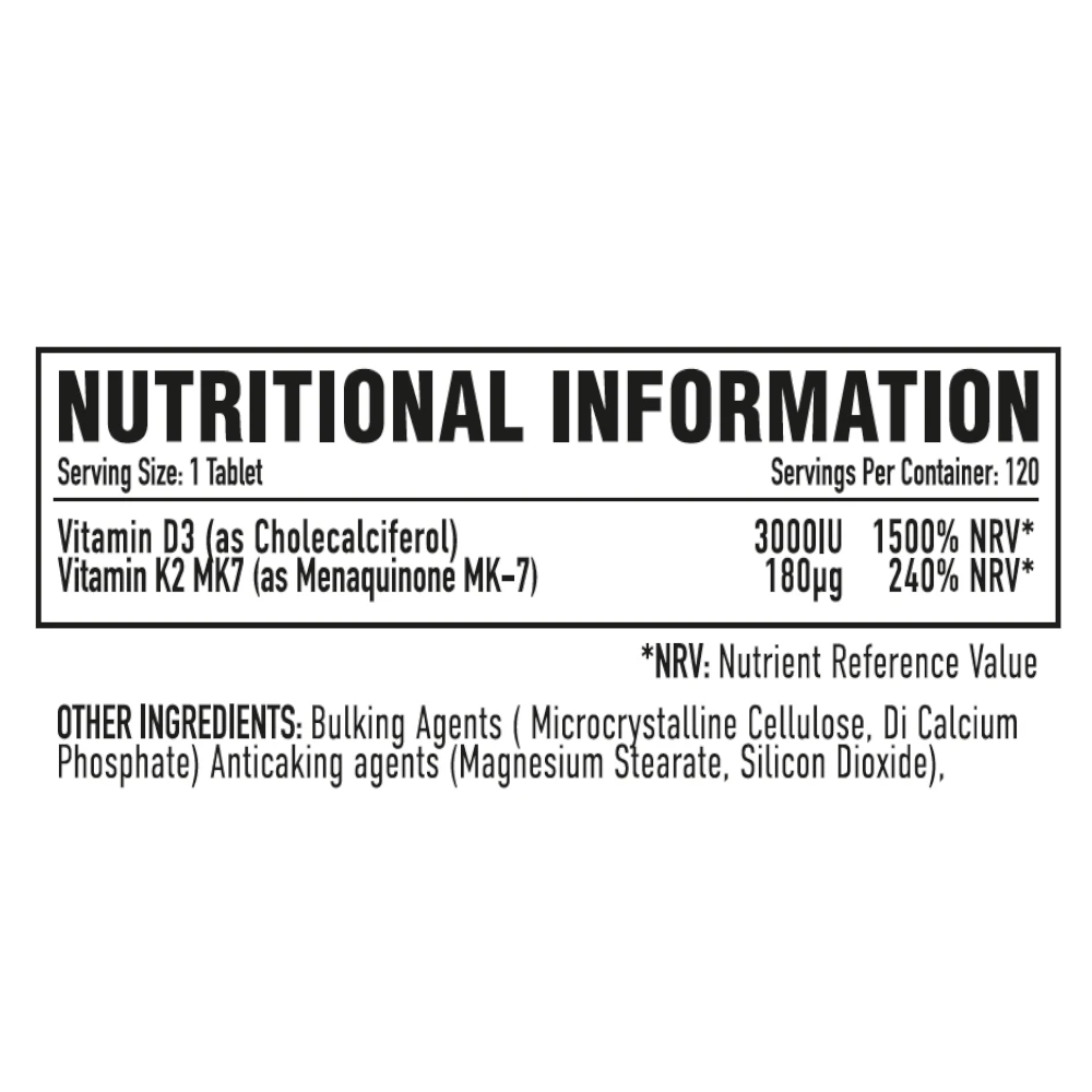 D3 Plus K2 is a premium supplement formulated to provide robust support for your immune system and promote optimal bone health. Each tablet delivers a combination of Vitamin D3 and Vitamin K2.